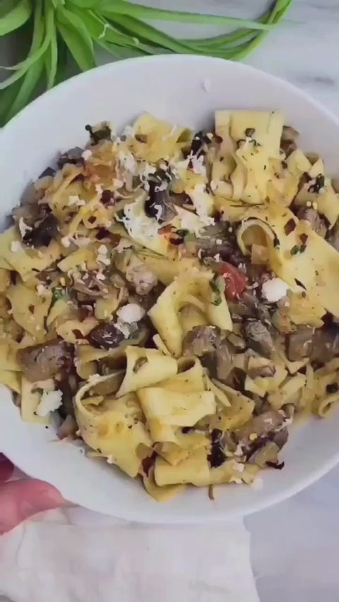 The Italian verb Pappare means "to gobble," and that is exactly what you'll be doing with our Pappardelle Pasta, the widest noodle we make. Served with ragu, stew, or chunky veggie sauce, it is simple perfection and cooks in just 5 minutes!